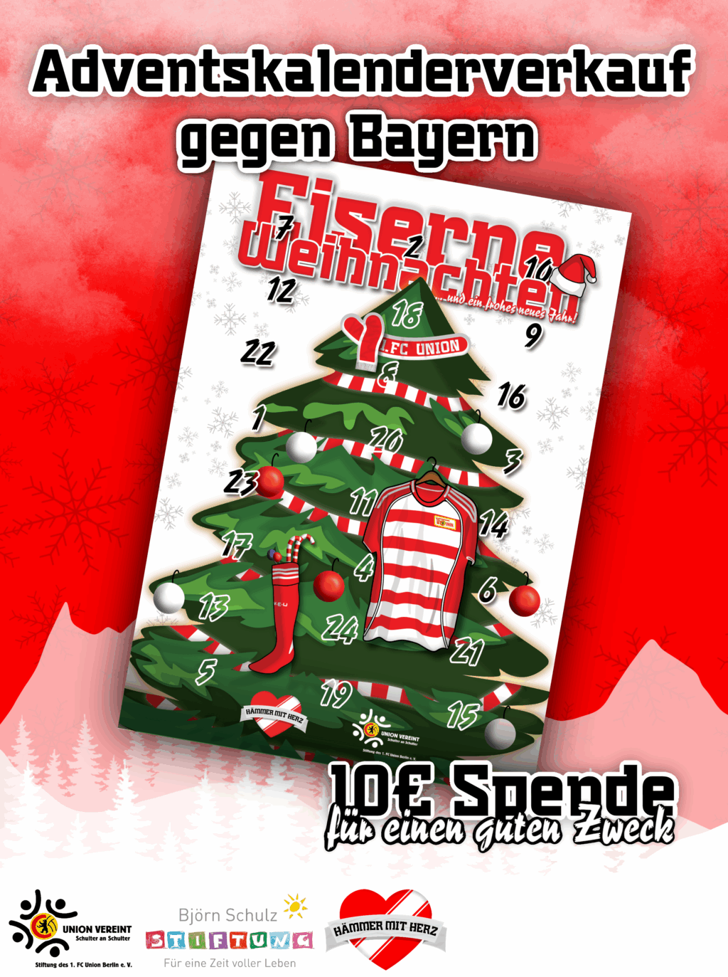 Wir verkaufen wieder in Zusammenarbeit mit der Union Stiftung einen Adventskalender beim Heimspiel gegen Bayern München.
